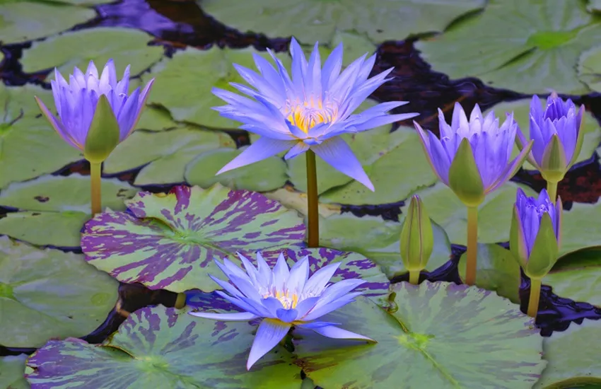 Waterlelies (Nymphaea) zijn planten die groeien en bloeien in stilstaand water (tot ca. 20 cm diep). Het blad drijft op het wateroppervlak en daarboven zitten stelen met bloemen. Van juni tot oktober is het non-stop genieten. De witte, gele, roze en rode waterlelies zijn het bekendst. In 2024 presenteert vdvelde.com de Nymphaea ‘Blue Queen’, een exclusieve, spectaculaire waterlelie met blauwe bloemen met een diameter van zo’n 20 cm. Uniek is dat de plant winterhard is. De blauwe waterlelie is, net als andere soorten, geschikt voor vijvers of waterbak met een diepte tot 40 cm.